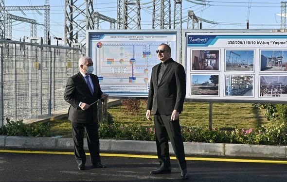 Prezident İlham Əliyev yarımstansiyanı işə salıb.