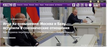 “Rossiya-1” telekanalının “Vesti” proqramın Azərbaycan Prezidenti İlham Əliyev ilə Rusiya Prezidenti Vladimir Putinin Kremldə keçirilən görüşündən hazırladığı materialda bildirilir ki, Bakı və Moskva arasında tərəfdaşlığın yeni səhifəsini açan görüş iki ölkə arasında diplomatik əlaqələrin qurulmasının 30-cu ildönümü ərəfəsində keçirilir. Süjetdə qeyd olunur ki, tərəflər mühüm ikitərəfli, regional və qlobal məsələləri müzakirə ediblər. Azərbaycan Prezidentinin rusiyalı həmkarını Bakıya dəvət etdiyini vurğulayan “Rossiya-1” kanalının müxbiri planlaşdırılan səfərin əhəmiyyətinə diqqət çəkib.