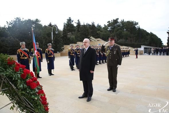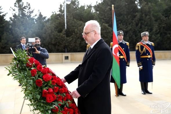 AZƏRTAC xəbər verir ki, Latviya prezidenti ulu öndərin məzarı önünə əklil qoyub.