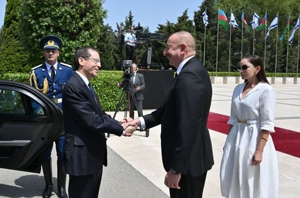 Azərbaycan Prezidenti İlham Əliyev İsrail Prezidenti İsxak Hersoqu qarşılayıb.