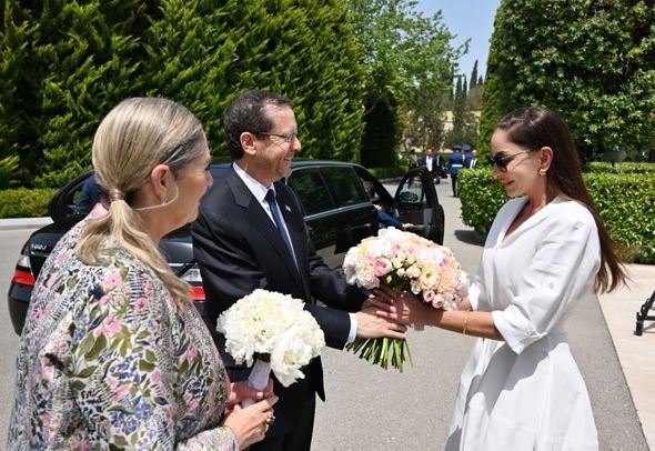 Azərbaycan Respublikasının Prezidenti İlham Əliyev və birinci xanım Mehriban Əliyeva İsrail Dövlətinin Prezidenti İsxak Hersoqu və birinci xanım Mixal Hersoqu qarşılayıblar.
