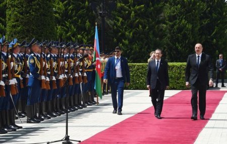 Dövlət başçıları fəxri qarovul dəstəsinin qarşısından keçiblər.