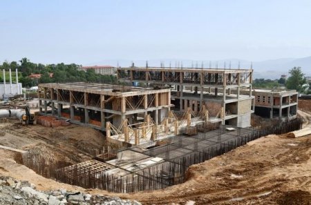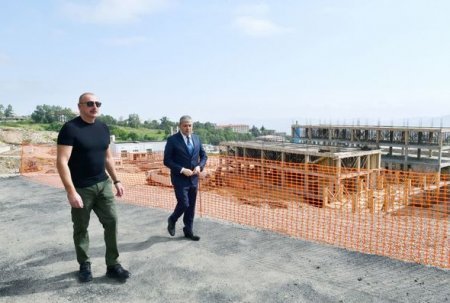 Prezident Şuşa şəhər xəstəxanasının binasında tikinti işlərinin gedişi ilə tanış olub - FOTO