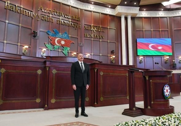 İndi isə yeni dövr başlayır. Biz bu dövrə alnımız açıq, üzümüz ağ, başımız dik daxil oluruq. Bu dövrün böyük nailiyyətləri olacaq, mən buna şübhə etmirəm. Çünki son illərin tarixi onu göstərir ki, qarşıya qoyduğumuz bütün vəzifələr icra edildi. Əlbəttə ki, bütöv Azərbaycan bu dövrə qədəm qoymuş, bütövləşmiş birlik nümayiş etdirmiş, o cümlədən bu seçkilərdə böyük birlik nümayiş etdirmiş xalq böyük uğurlara imza atacaq. Mənim buna şübhəm yoxdur. Azərbaycan cəmiyyətində hökm sürən çox müsbət ab-hava bizi daha da gücləndirir. Güclü Azərbaycan bizim həmişə hədəfimiz olub. Əgər güclü Azərbaycan qurmasaydıq, əgər kimdənsə istər siyasi, istər iqtisadi sahədə asılı olmuş olsaydıq, heç vaxt biz ərazi bütövlüyümüzü bərpa edə bilməzdik. Uzun danışıqlar prosesi çərçivəsində dəfələrlə bizə hansısa yarımçıq təkliflər irəli sürülürdü, təklif edilirdi. Ancaq o təkliflər bizim üçün qəbuledilməz idi, mən hər dəfə deyirdim ki, Azərbaycan Bayrağı ərazimizin hər bir yerində dalğalanacaq.
