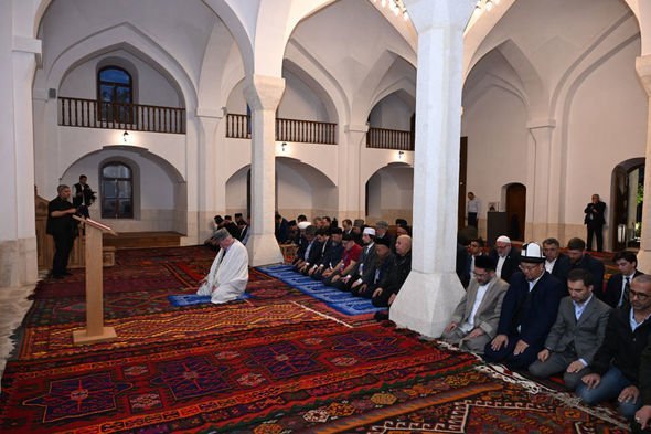 Müsəlman din xadimləri məsciddə namaz qılıblar.