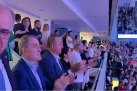 Ceyhun Bayramovla Mövlud Çavuşoğlu Türkiyə millisinin oyununu izləyiblər