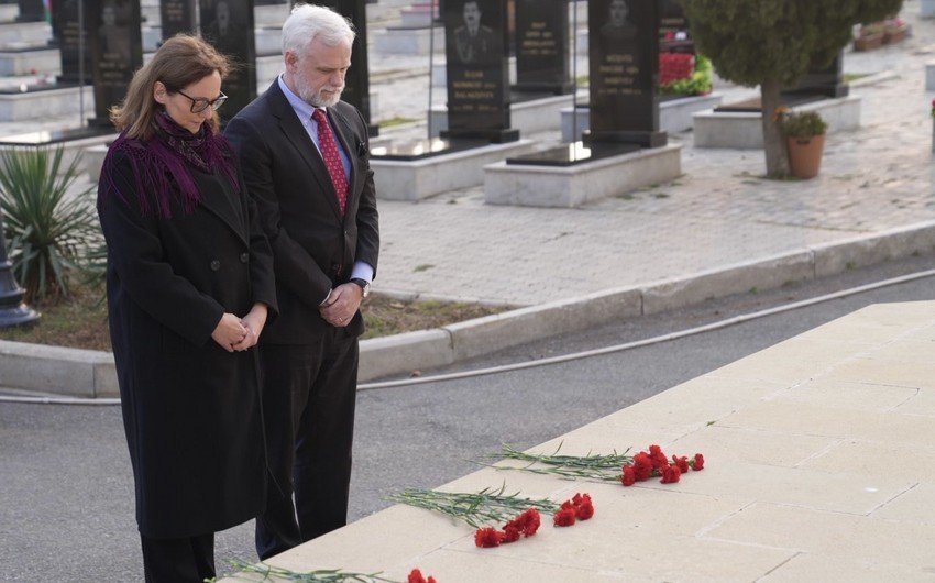 ABŞ səfiri Gəncədə Ermənistan-Azərbaycan münaqişəsi qurbanlarının xatirəsini yad edib