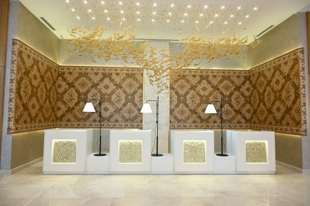 Qeyd edək ki, yeni hotelin interyerində milli ornamentlərə üstünlük verilib. Taxtadan hazırlanmış və əl işi olan Qarabağ xalçasının nümunəsi də hotelin interyerini bəzəyən elementlərdən biri olacaq.