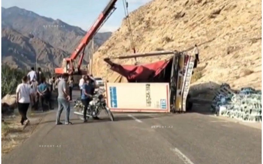Naxçıvandan Bakıya gələn yük maşını İranda aşıb, mineral sular yola dağılıb