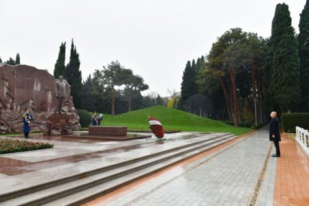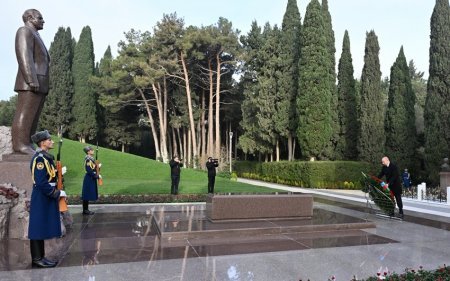 Prezident İlham Əliyev Ulu Öndərin məzarı önünə əklil qoyub.