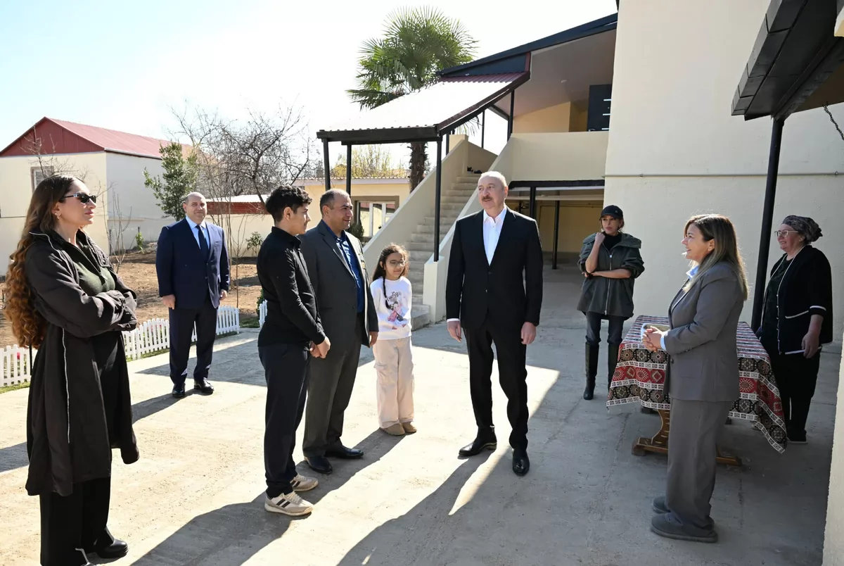 Sonra Prezident İlham Əliyev, birinci xanım Mehriban Əliyeva və qızları Arzu Əliyeva Xocavənd şəhərinə köçmüş İlqar Həsənovun evində oldular və söhbət etdilər.