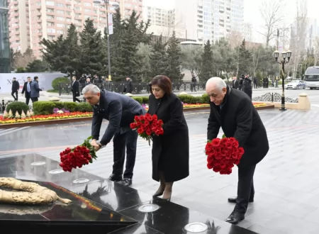 azturktv.az xəbər verir ki, dövlət və hökumət rəsmiləri soyqırımı abidəsinin önünə gül dəstələri düzərək, faciə qurbanlarının əziz xatirələrini ehtiramla anıblar.